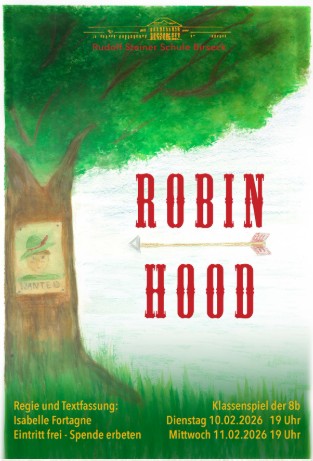 Das Theaterstück "Robin Hood", wird von der Klasse 8b der Rudolf Steiner Schule Birseck in Aesch (BL) inszeniert. Aufführungen finden im Theatersaal glich beim Bahnhof Aesch statt am Di. & Mit. 10. & 11. Februar 2025 jeweils um 19 Uhr statt. Wir unterstützen dieses Projekt.